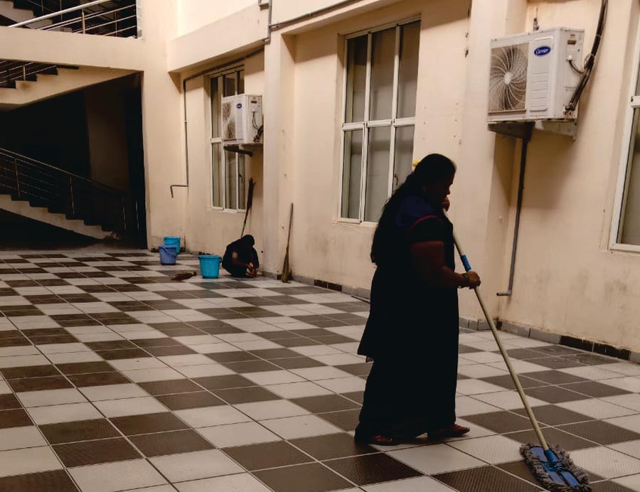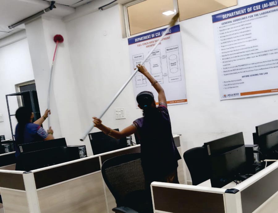 - Systematic cleaning plan for all areas (floors, washrooms, common areas, workstations).
